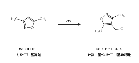 2.通過3,5-二甲基異唑合成4-氯甲基-3,5-二甲基異噁唑,收率約24%;
