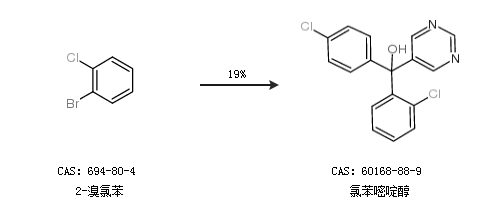 1.通過(guò)2-溴氯苯合成氯苯嘧啶醇,收率約19%;