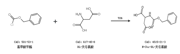 1.通過(guò)氯甲酸芐酯和DL-天冬氨酸合成N-Cbz-DL-天冬氨酸,收率約70%;