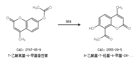2.通過(guò)7-乙酰氧基-4-甲基香豆素合成8-乙?;?7-羥基-4-甲基-2H-1-苯并吡喃-2-酮,收率約86%;