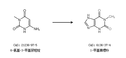 1.通過6-氨基-3-甲基尿嘧啶合成1-甲基黃嘌呤