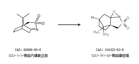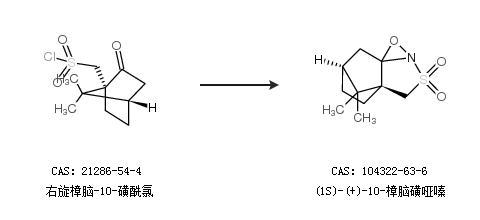 1.通過(1S)-(-)-樟腦內(nèi)磺酰亞胺合成(1S)-(+)-10-樟腦磺啞嗪