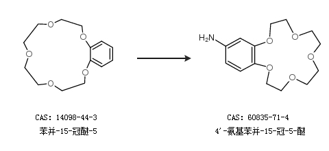1.通過(guò)苯并-15-冠醚-5合成4''-氨基苯并-15-冠-5-醚
