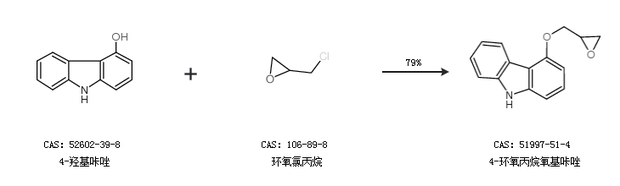 1.通過4-羥基咔唑和環(huán)氧氯丙烷合成4-環(huán)氧丙烷氧基咔唑,收率約79%;