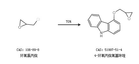 2.通過環(huán)氧氯丙烷合成4-環(huán)氧丙烷氧基咔唑,收率約70%;