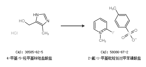 1.通過4-甲基-5-羥甲基咪唑鹽酸鹽合成2-氟-1-甲基吡啶翁對甲苯磺酸鹽