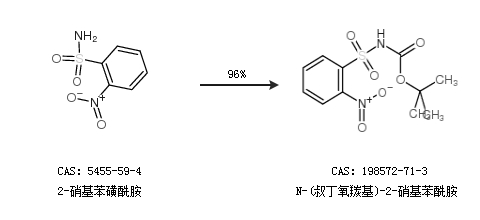 1.通過2-硝基苯磺酰胺合成N-(叔丁氧羰基)-2-硝基苯酰胺,收率約96%;