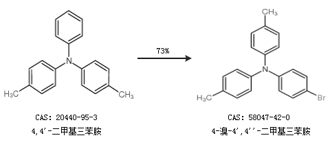 2.通過(guò)4-碘甲苯和4-溴苯胺合成4-溴-4'',4''''-二甲基三苯胺,收率約85%;