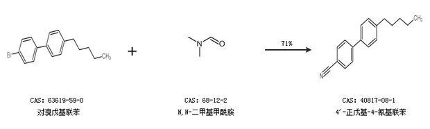 2.通過對溴戊基聯(lián)苯和N,N-二甲基甲酰胺合成4''-正戊基-4-氰基聯(lián)苯,收率約71%;