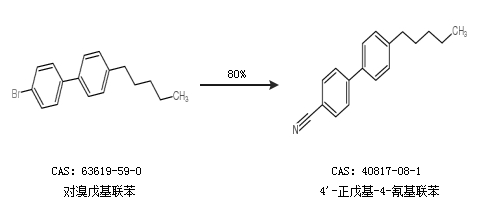 1.通過對溴戊基聯(lián)苯合成4''-正戊基-4-氰基聯(lián)苯,收率約80%;