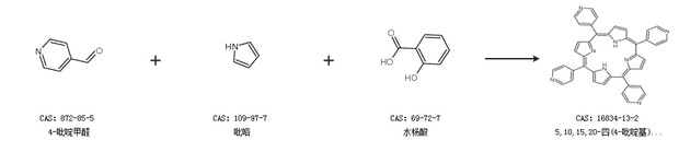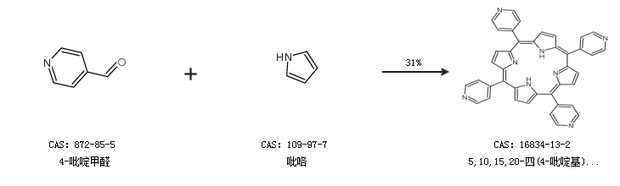 1.通過4-吡啶甲醛和吡咯合成5,10,15,20-四(4-吡啶基)卟啉,收率約31%;
