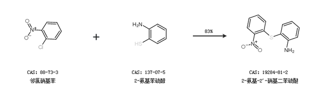 2.通過鄰氯硝基苯和2-氨基苯硫醇合成2-氨基-2''-硝基二苯硫醚,收率約83%;