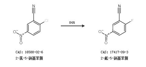 1.通過2-氯-5-硝基苯腈合成2-氟-5-硝基苯腈,收率約84%;