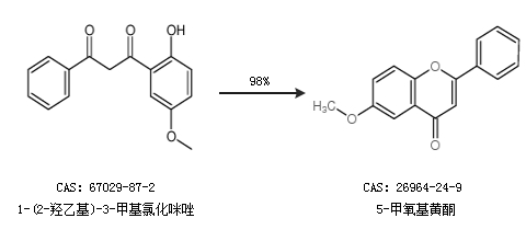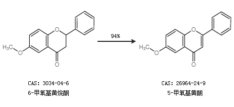 1.通過6-甲氧基黃烷酮合成5-甲氧基黃酮,收率約94%;