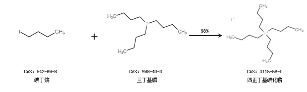 1.通過碘丁烷和三丁基膦合成四正丁基碘化膦,收率約98%;
