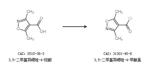 1.通過3,5-二甲基異噁唑-4-羧酸合成3,5-二甲基異噁唑-4-甲酰氯
