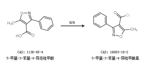 1.通過5-甲基-3-苯基-4-異惡唑甲酸合成5-甲基-3-苯基-4-異唑甲酰氯,收率約92%;