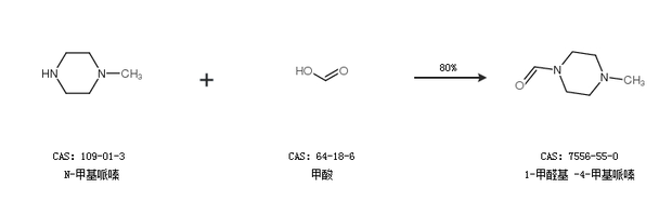1.通過N-甲基哌嗪和甲酸合成1-甲醛基 -4-甲基哌嗪,收率約80%;
