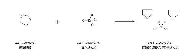 1.通過四氫呋喃和氯化鋯(IV)合成四氯雙(四氫呋喃)合鋯(IV)