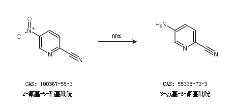 1.通過(guò)2-氰基-5-硝基吡啶合成3-氨基-6-氰基吡啶,收率約88%;