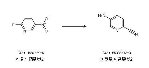 2.通過(guò)2-溴-5-硝基吡啶合成3-氨基-6-氰基吡啶
