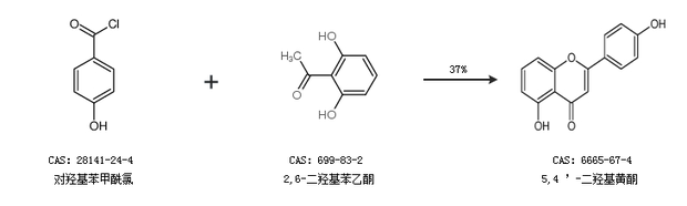2.通過對羥基苯甲酰氯和2,6-二羥基苯乙酮合成5,4 ’-二羥基黃酮,收率約37%;