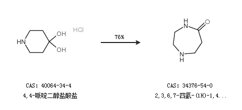 2.通過(guò)4,4-哌啶二醇鹽酸鹽合成2,3,6,7-四氫-(1H)-1,4-二氮雜卓-5(4H)-酮,收率約76%;