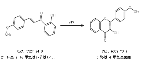1.通過(guò)2''-羥基-2-(4-甲氧基亞芐基)乙酰苯合成3-羥基-4-甲氧基黃酮,收率約91%;