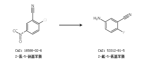 1.通過2-氯-5-硝基苯腈合成2-氟-5-氨基苯腈